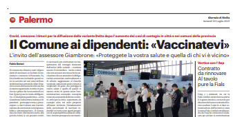 L'edizione odierna del "Giornale di Sicilia" si sofferma sulla richiesta del Comune di Palermo ai suoi dipendenti "Vaccinatevi". Lo ha...
