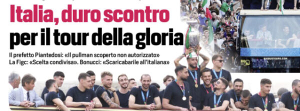 L'edizione odierna del "Corriere dello Sport" si sofferma sulla polemica scatenatasi attorno al pullman scoperto della Nazionale. Matteo Piantedosi, prefetto...