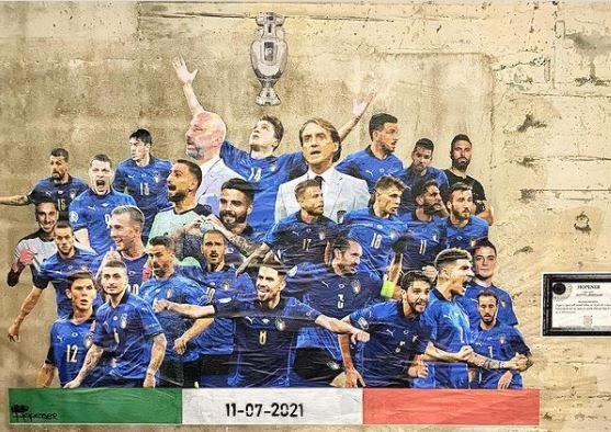 Un omaggio all'Italia campione d'Europa arriva da Taormina. La firma è di un artista siciliano, Hopener, che su un muro...