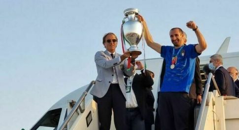 L'Italia campione d'Europa è atterrata a Roma alle 6:06 con un volo dell'Alitalia proveniente da Londra Luton. Un boato quando...