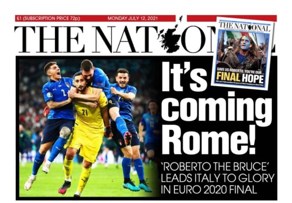 «It’s coming Rome» titola il quotidiano scozzese The National. Il soprannome associato al ct Mancini è quello di "Roberto The...