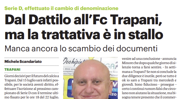 L'edizione odierna del "Giornale di Sicilia" si sofferma sulla costituzione del nuovo Trapani. E' arrivata la decisione dei soci del...