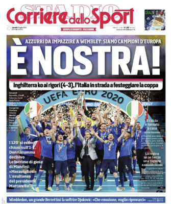 L'edizione odierna del "Corriere dello Sport" esalta il trionfo dell'Italia. "Football came home!" Il calcio è tornato a casa. Siamo...