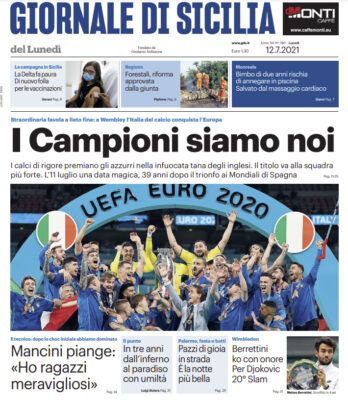 La prima pagina del "Giornale di Sicilia" esalta la vittoria dell'Europeo da parte dell'Italia. I calci di rigore premiano gli...