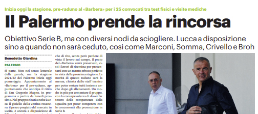 L'edizione odierna del "Giornale di Sicilia" si sofferma sul pre-raduno del Palermo. La stagione inizia oggi pomeriggio. Appuntamento al "Barbera"...