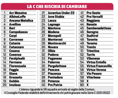 L'edizione odierna del "Corriere dello Sport" si sofferma sulla possibile rivoluzione in Serie C. Dopo le valutazioni della Covisoc, sembra...