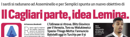 L'edizione odierna del "Corriere dello Sport" si sofferma sulle ultime trattative in Serie A. Il Cagliari valuta Mario Lemina, ex...