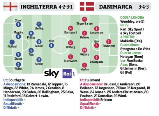 Corriere dello Sport: “Euro 2020. Stasera Inghilterra-Danimarca. Le probabili formazioni”