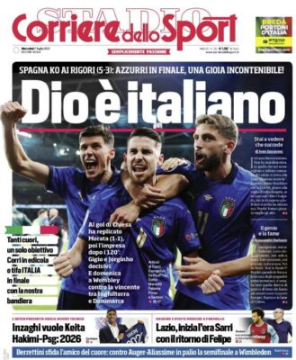 L'edizione odierna del "Corriere dello Sport" si sofferma sull'approdo dell'Italia alla finale di Euro 2020. Immobile mette pressione a Eric...