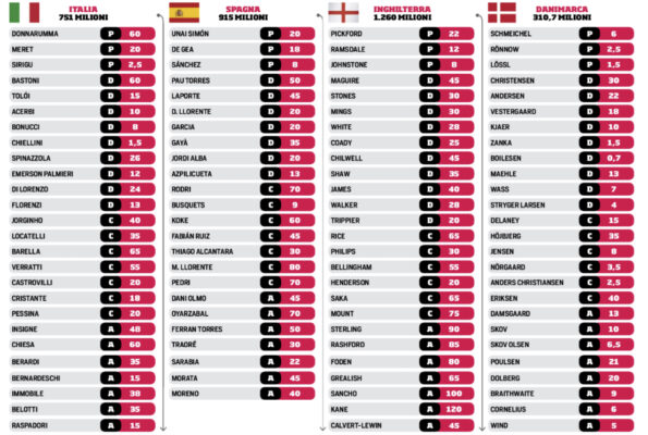 L'edizione odierna del "Corriere dello Sport" si sofferma sulle quotazioni delle semifinaliste di Euro 2020. La nazionale più costosa è...