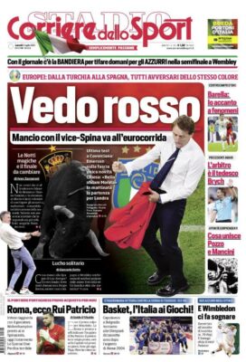 La prima pagina odierna del "Corriere dello Sport" parla già di Italia-Spagna, semifinale di Euro2020 in programma domani sera. Il...