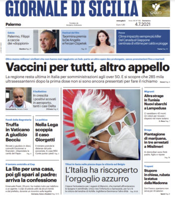 La prima pagina del "Giornale di Sicilia" si sofferma sulla campagna vaccinale in Sicilia. La regione resta ultima in Italia...