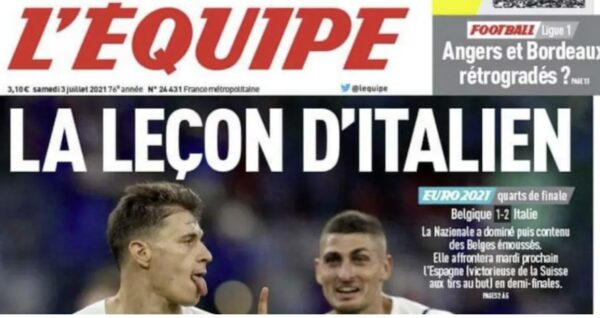 La prestazione sontuosa dell'Italia contro il Belgio è stata celebrata anche all'estero. L'illustre quotidiano francese "L'Équipe" ha dedicato la prima...