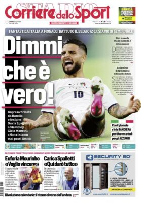 Corriere dello Sport: “Lazio. Maglia shock, non sarà più celeste. Sparisce lo storico colore sociale. Le altre due casacche? Una bianca e una nera”