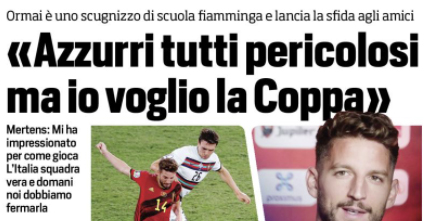 L'edizione odierna del "Corriere dello Sport" riporta le dichiarazioni di Dries Mertens, attaccante del Napoli e del Belgio: «Forse sì,...