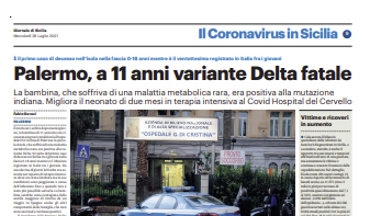L'edizione odierna del "Giornale di Sicilia" si sofferma sulla tragica scomparsa della piccola Ariele. E' deceduta ieri, subito dopo mezzogiorno,...