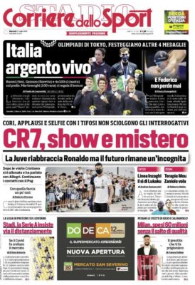 La prima pagina dell'edizione odierna del "Corriere dello Sport" parla di "Argento Vivo" per l'Italia alle Olimpiadi. In alto la...