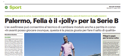 L'edizione odierna del "Giornale di Sicilia" parla dell'ultimo arrivato in casa Palermo Fella, per il Palermo, non è un semplice...
