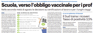 L'edizione odierna del "Giornale di Sicilia" parla della situazione scuola. Dopo aver approvato il decreto che rende obbligatorio il green...