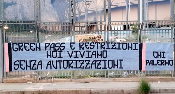 Striscione della Curva Nord Inferiore contro il Green Pass esposto al Barbera. Questa la foto: