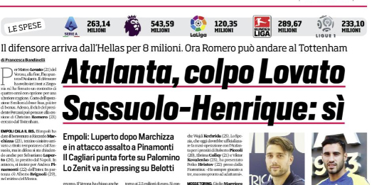L'edizione odierna de "Il Corriere dello Sport" ha fatto il punto sulle trattative del giorno in serie A. Per Matteo...