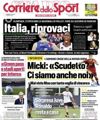 La prima pagina dell'edizione odierna de "Il Corriere dello Sport" si sofferma, oltre che sulle Olimpiadi, anche sulla richiesta della...