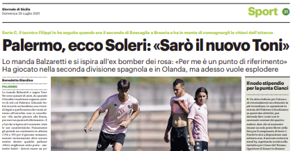 L'edizione odierna del "Giornale di Sicilia" riporta le dichiarazioni di Edoardo Soleri, nuovo attaccante del Palermo: «Ha anche giocato alla...