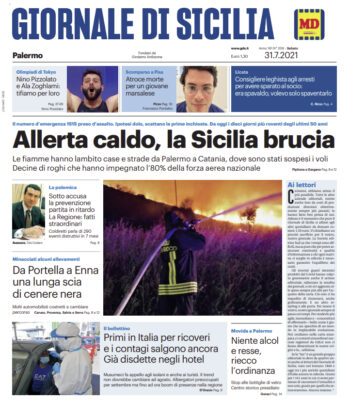 L'edizione odierna de "Il Giornale di Sicilia" si sofferma sull'ondata di calore e sugli incendi che stanno investendo la Sicilia....