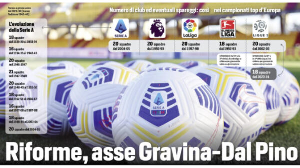 L'edizione odierna de "Il Corriere dello Sport" si sofferma sulla serie A e sulla nuova riforma che incombe. L'asse Gravina-Dal...