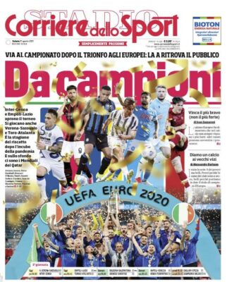 Corriere dello Sport: “Rivoluzione Telecalcio. Tutta la Serie A su Dazn e TimVision, su Sky tre partite in coesclusiva, le Coppe e l’estero top. La novità? La Champions il mercoledì è su Amazon”