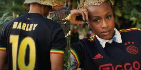 Il kit, nero con dettagli rossi, gialli e verdi, celebra il legame tra i tifosi dell'Ajax, la leggenda del reggae...