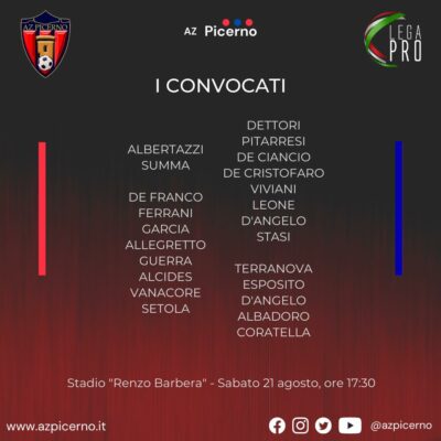 Il Picerno ha diramato la lista dei convocati per il match di domani contro il Palermo valido per il primo...