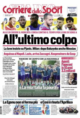 La prima pagina dell'edizione odierna del "Corriere dello Sport" parla dell'ultimo giorno di mercato. La finestra estiva si concluderà quest'oggi...