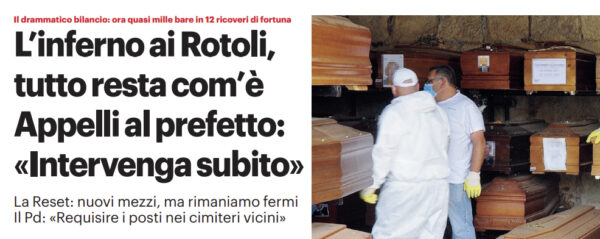 L'edizione odierna de "Il Giornale di Sicilia" si sofferma sull'emergenza al cimitero dei rotoli. Tutto resta com'è, nel placido sonno...
