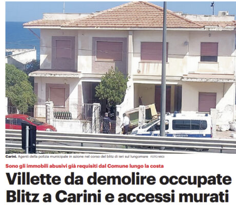 L'edizione odierna de "Il Giornale di Sicilia" si sofferma sul blitz fatto a Carini a causa di alcune villette occupate....
