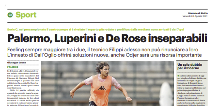 L'edizione odierna de "Il Giornale di Sicilia" si sofferma sul centrocampo rosanero con Luperini e De Rose inseparabili. Fedelissimi, alfieri....