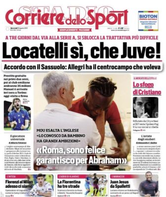 La prima pagina dell'edizione odierna del "Corriere dello Sport" parla della trattativa sbloccata tra il Sassuolo e la Juventus per...