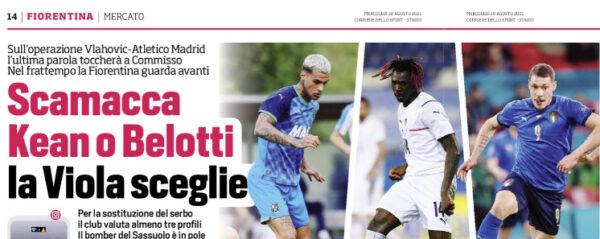 L'edizione odierna del "Corriere dello Sport" parla delle vicende in casa Fiorentina. Sul destino di Vlahovic, per il quale l’Atletico...