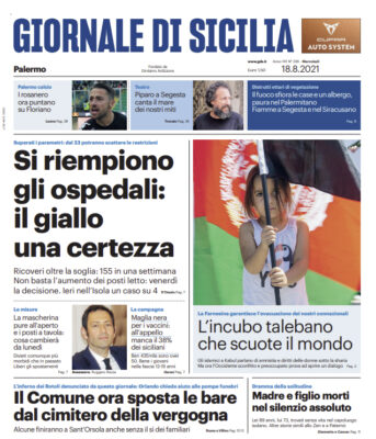 Prima pagina Giornale di Sicilia: “Si riempiono gli ospedali: il giallo una certezza. Calcio, i rosanero ora puntano su Floriano”