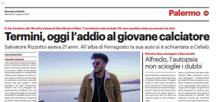 L'edizione odierna del "Giornale di Sicilia" si sofferma sulla scomparsa di Salvatore Rizzotto, 21enne che ha perso la vita in...