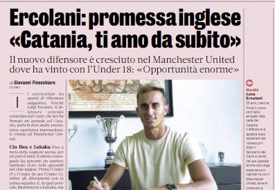 L'edizione odierna della "Gazzetta dello Sport" riporta le dichiarazioni di Luigi Ercolani, nuovo difensore del Catania. Fino alla prima parte...