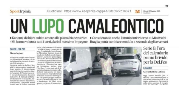 L'edizione odierna de "Il Mattino" si sofferma sul colpo messo a segno dall'Avellino prendendo Kanoute dal Palermo. "Un Lupo camaleontico"...