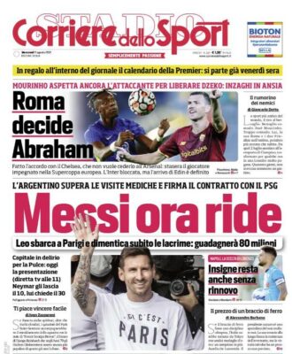 L'edizione odierna del "Corriere dello Sport" si sofferma sulla straordinaria squadra allestita dal PSG. Il colpo del secolo è Lionel...
