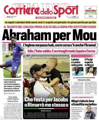 Tanti i temi trattati sulla prima pagina dell'edizione odierna de "Il Corriere dello Sport". "Abraham per Mou: il talento del...