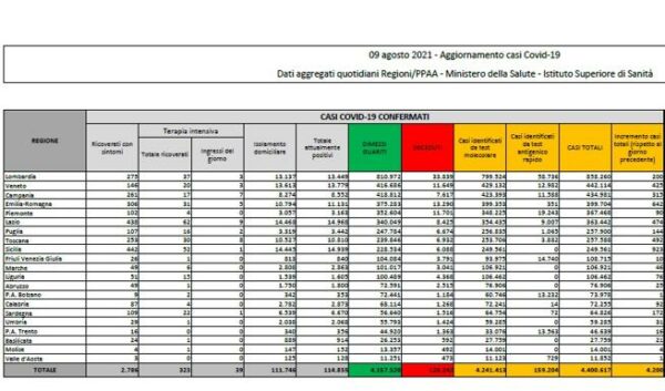 Sono 4.200 i nuovi positivi al coronavirus alle 17.40 di lunedì 9 agosto e portano il totale, dall’inizio della pandemia,...