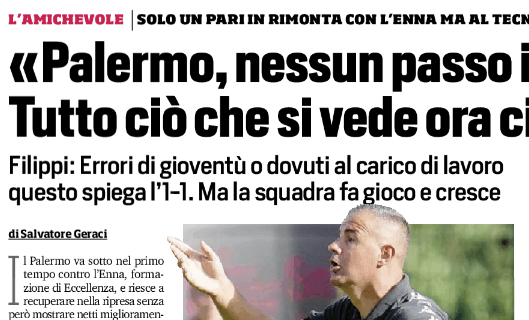 L'edizione odierna del "Corriere dello Sport" riporta le dichiarazioni di Giacomo Filippi, allenatore del Palermo, al termine della sfida amichevole...