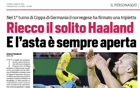 L'edizione odierna del "Corriere dello Sport" si sofferma sull'asta scatenatasi attorno a Erling Haaland. A Dortmund sono convinti che il...
