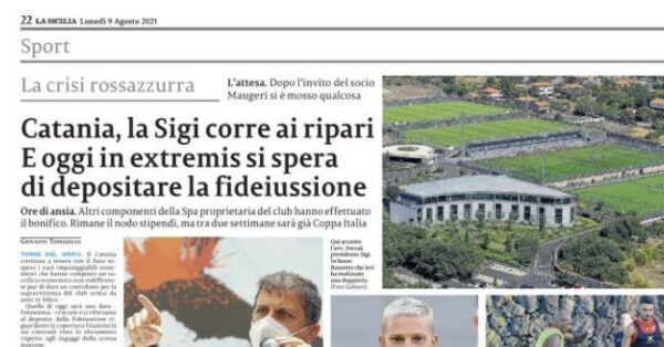 L'edizione odierna de "La Sicilia" analizza la difficile situazione del Catania. Oggi bisognerà rispettare la scadenza per il deposito della...