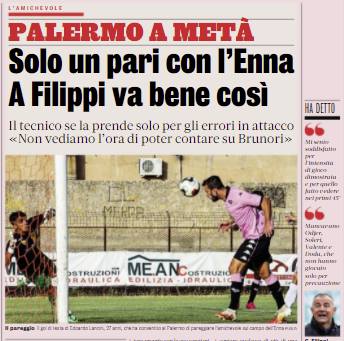 L'edizione odierna della "Gazzetta dello Sport" si sofferma sul pari fra Enna e Palermo. La squadra militante in Eccellenza ha...