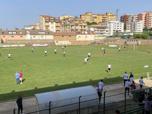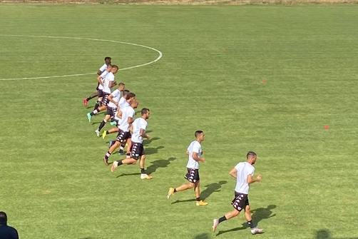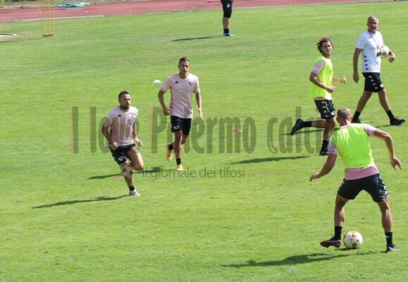 Alle 17.30 fischio d'inizio di Enna-Palermo, amichevole pre-campionato. I rosanero sono appena scesi in campo per il riscaldamento. In alto...